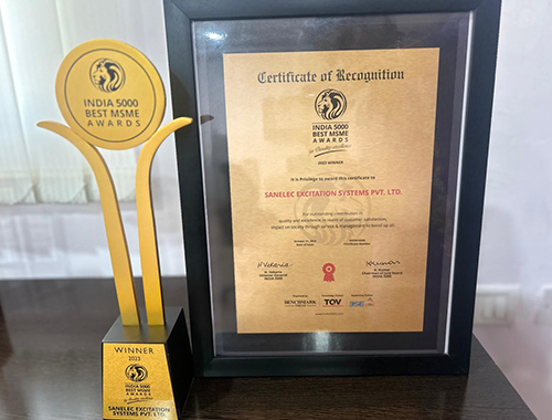 Sanelec received the “India 5000 BEST MSME awards 2023.” organized by Benchmark Trust in association with TQV and BSE sme.