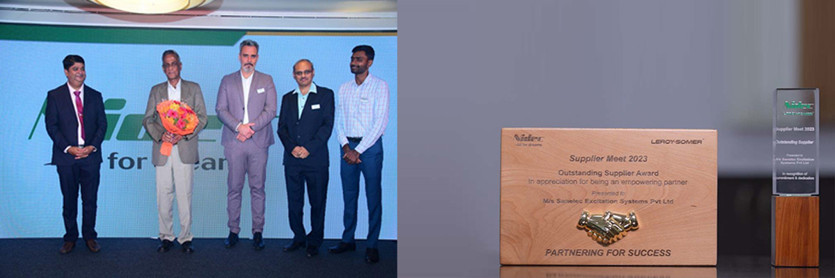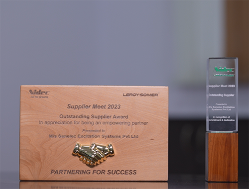 Sanelec received the “Outstanding Supplier Award 2023” from NIDEC LEROY-SOMER, India.